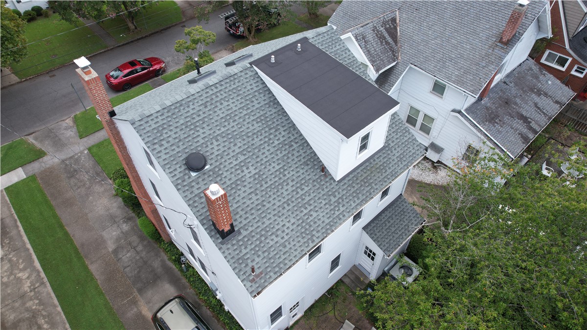 Replaced two Velux Skylights on the front of the home. Repaired the surrounding roofing area with Atlas Pinnacle Pristine in Pewter.