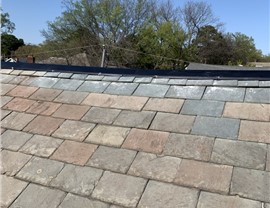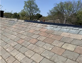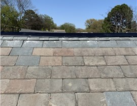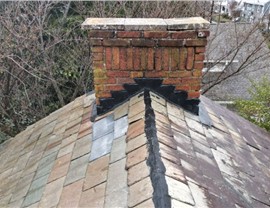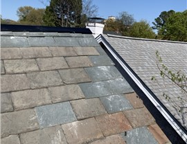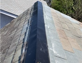 Semi-Weathering Vermont Gray/Green slate and Hip & Ridge Cap roof repairs on this 1918 historical home.